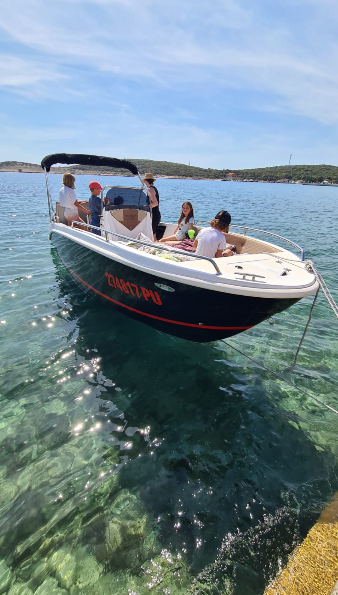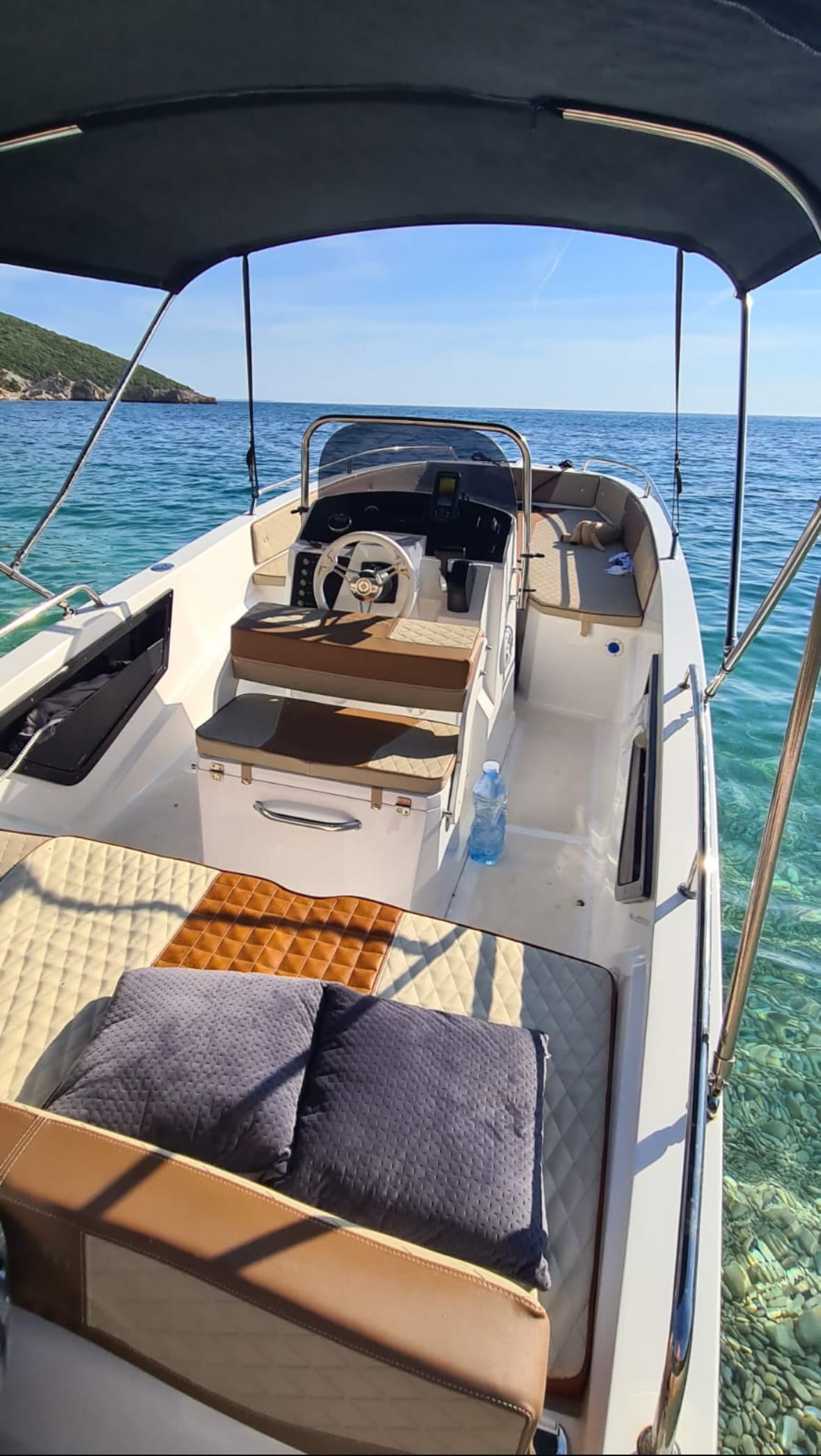 The Tiger Marine 750 is our flagship boat - perfect for larger groups who want both speed and comfort. Equipped with a 225 HP Honda engine, this boat glides effortlessly through the Adriatic, making it ideal for full-day trips, island hopping, and sea adventures.